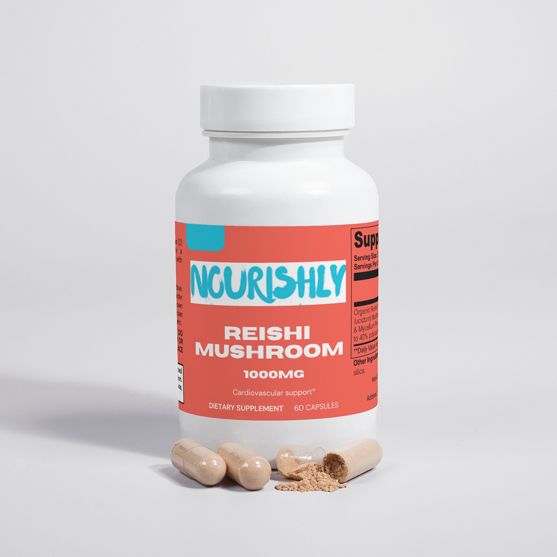 Ingredients: Organic Reishi (Ganoderma lucid) Mushroom Fruiting Body & Mycelium Powder (Standardized to 40% polysaccharides [400mg]), Organic capsule (pullulan, water), silica.
